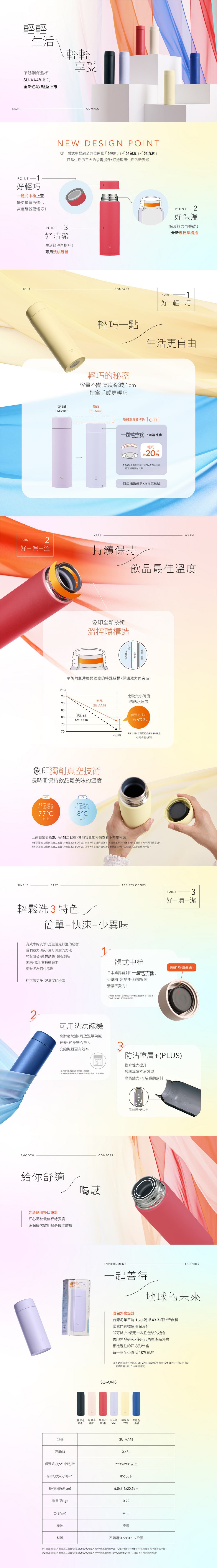 象印0.48L不銹鋼一體式中栓真空保溫保冷杯 SU-AA48【產地直寄】