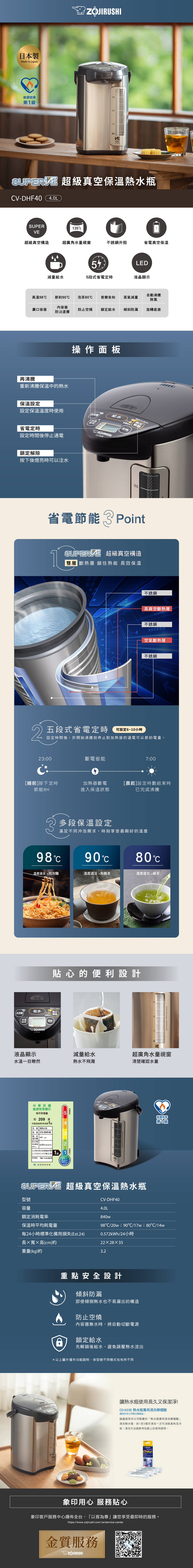 象印微電腦VE真空保溫電熱水瓶4公升 CV-DHF40【產地直寄】